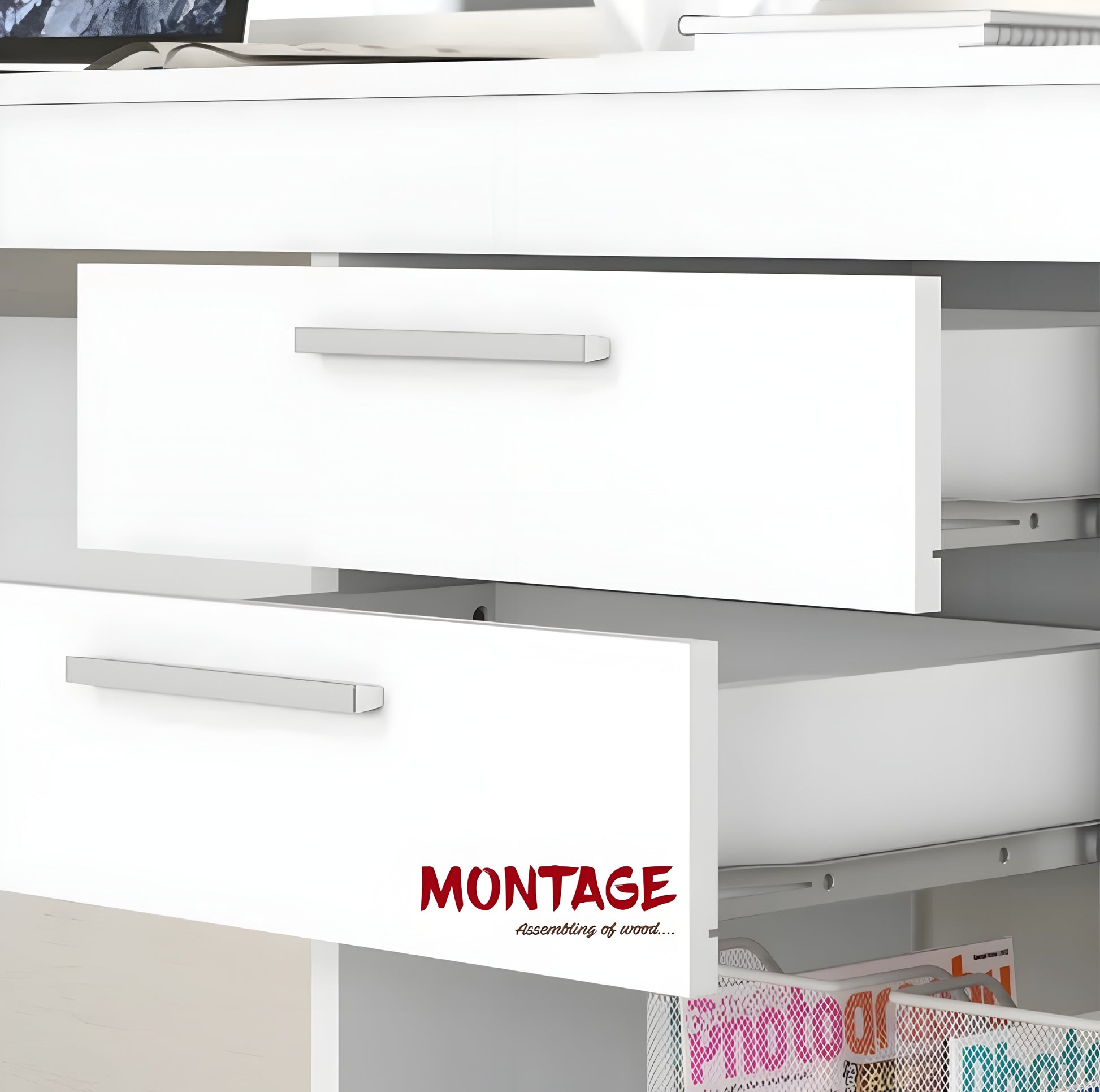 - Two convenient drawers for organizing supplies and keeping your workspace clutter-free. Whether used as a study desk, home office setup, or craft table, the MONTAGE Study Table adapts to meet various needs, making it a practical choice for students, professionals, or creatives.