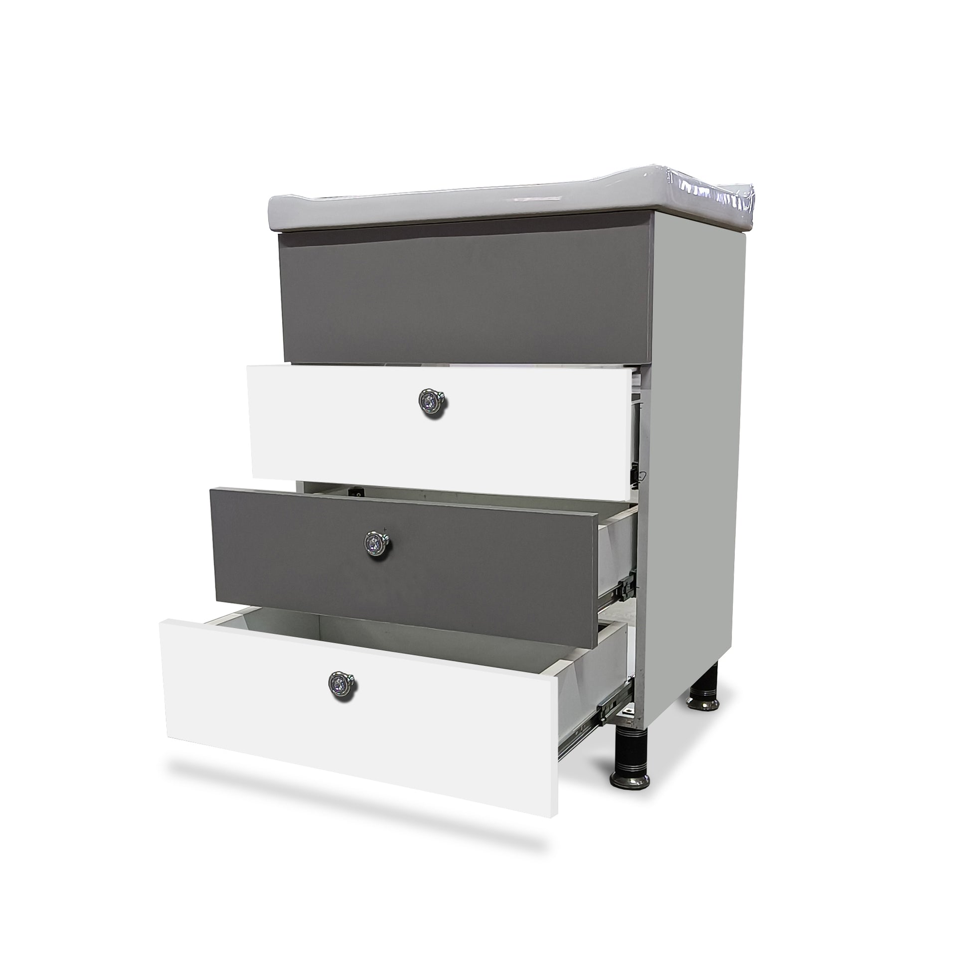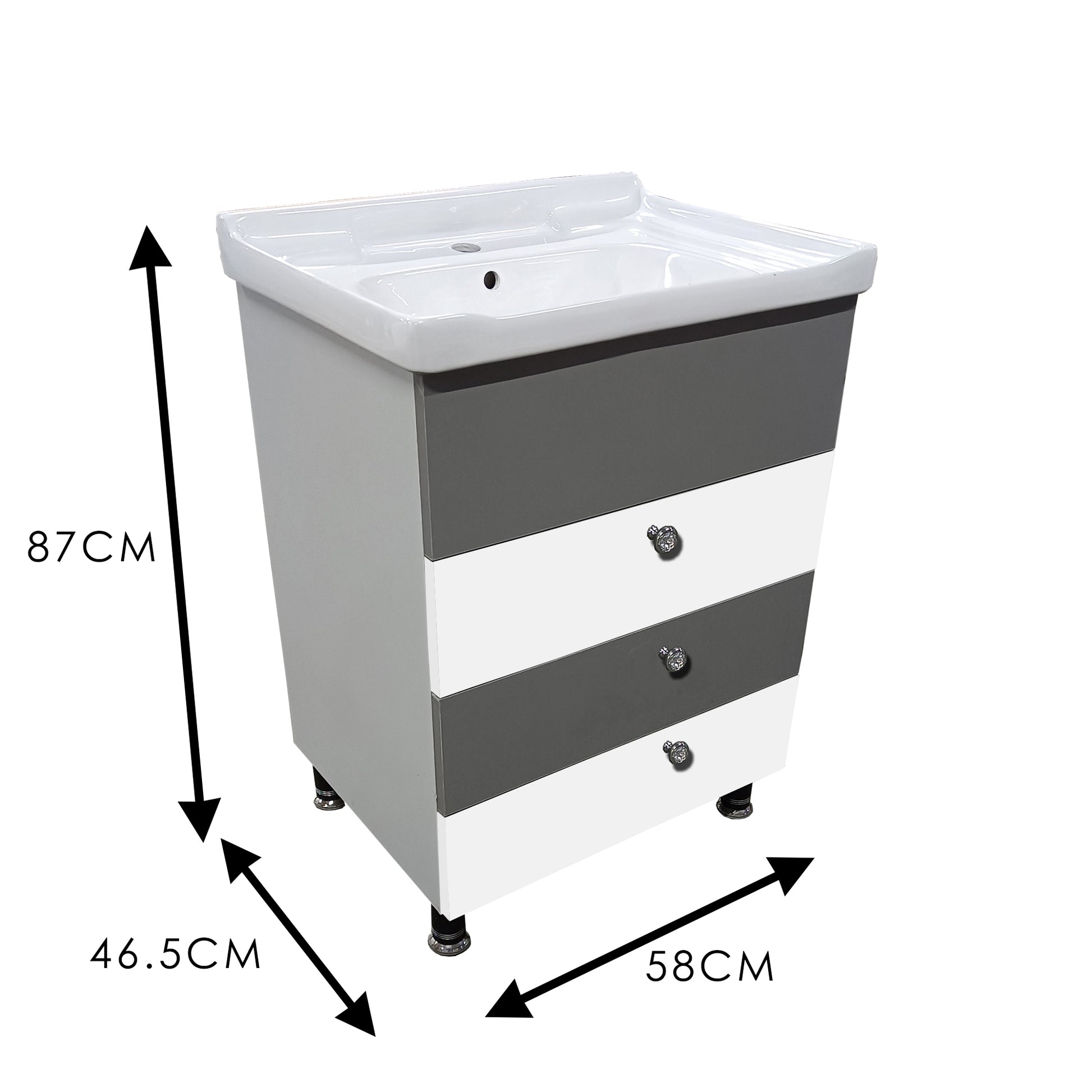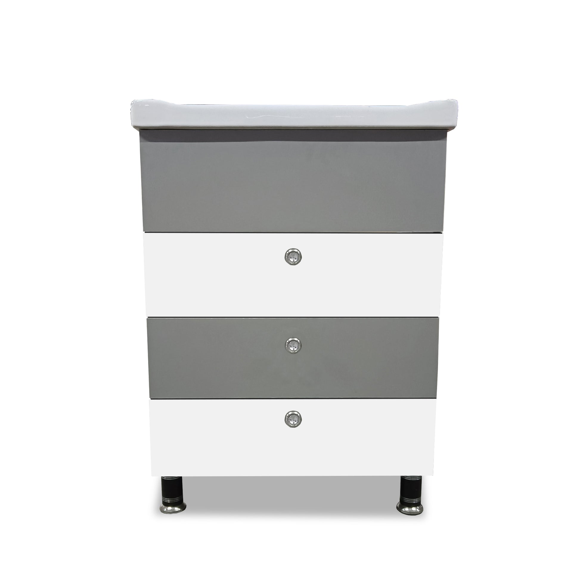 Front side views Material Made by high density water resistant material HDHMR board for long life. 2 drawers and 1 door space. Hardware Premium quality iron hinge joints door Diamond shape drawers handle. Side view and doors channel Drawer channels High quality stainless steel drawer channels for smoothly open and close the drawers. Wash basin Wash basin High quality ceramic wash basin. Front side views Steel legs Premium quality stainless steel legs.